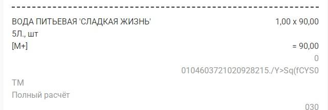 Да, это пример под 7.7, или любую программу, которая с драйвером напрямую умеет работать... Под компоненту - все тоже самое, просто там нужно смотреть ревизию компоненты и обработки, что-бы она тоже под ФФД-1.2 была, там марка тоже целиком, как есть, должна передаваться. Что-то это: "первые 31 символ от маркировки переводим в двоичные данные, кодируем в base64 и передаем в GoodCodeDat" мне очень ФФД-1.05 напоминает, там именно на подобии такого кодировались КМ... (0) У нас УТ 10.3 А компонента, и обработка обслуживания тоже из нее, типовые? Тогда, может в этом и причина - они устаревшие? Я не знаю, что и как отображает Ярус, я с ним не работаю... Но, вот, как марка видна в 1-ОФД: В режиме просмотра чека: ![]() А это если скачать текстовиком чек, у них он называется TLV, хотя, имхо с форматом TLV это не имеет ничего общего: ![]() Как видите - марка целиком. Ни каких "44 4D", отдельно GTIN, серийник - там нет, это все было по ФФД-1.05... |