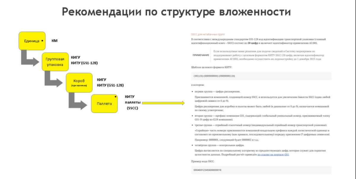 С 1 декабря 2025 года в рамках унификации агрегации рекомендуется использовать целевой формат кода идентификации транспортной упаковки (КИТУ) — SSCC с идентификатором применения AI (00).
